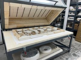 30" x 60" Flatbed Kiln (Gensis digital controller side and top elements)- perfect for large panels, production work, and advanced firings, 28" x 58" hardy board shelf. Fiber Paper is used for larger projects